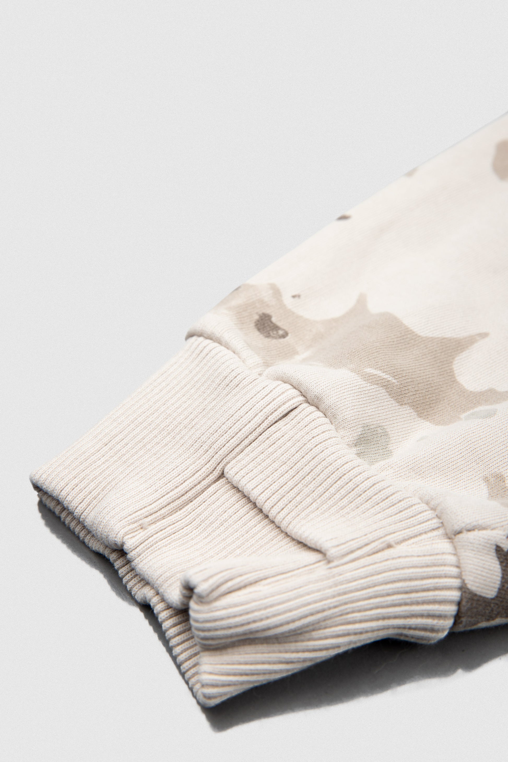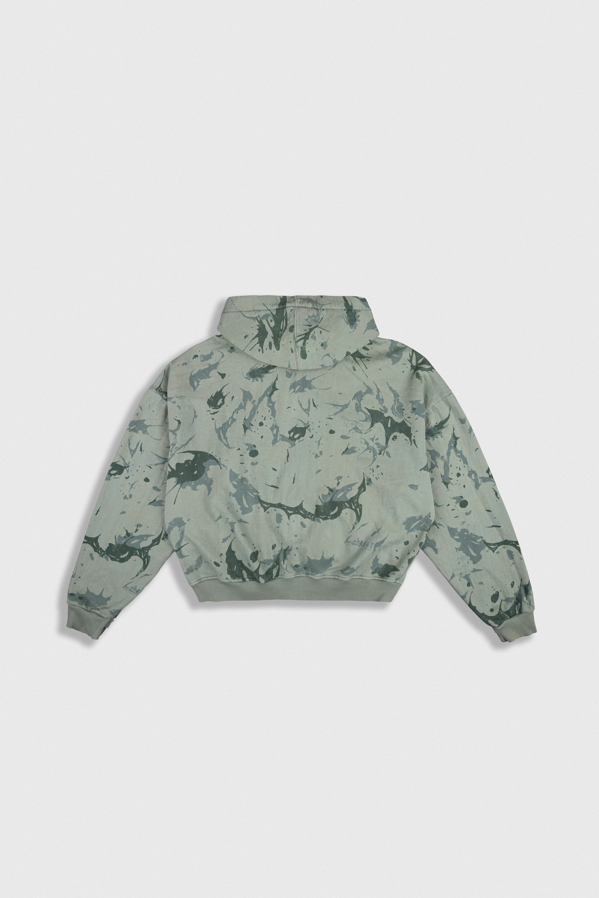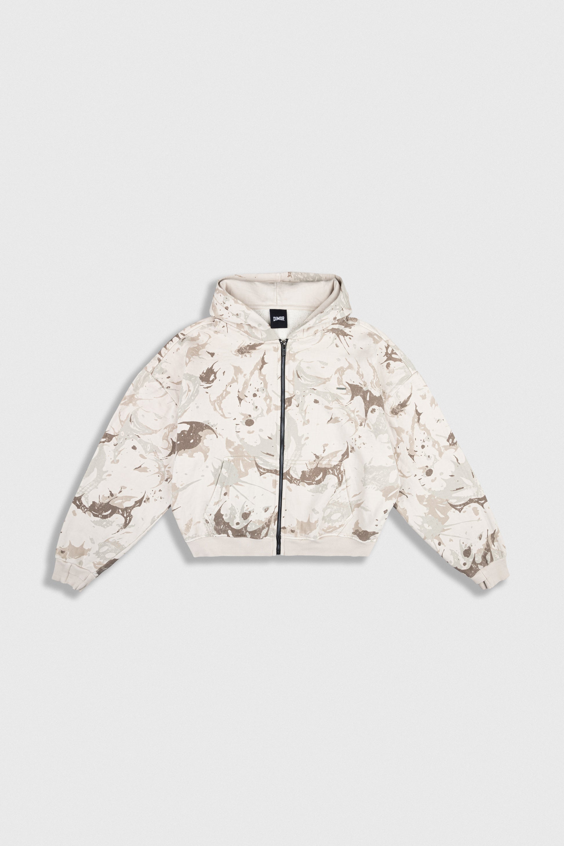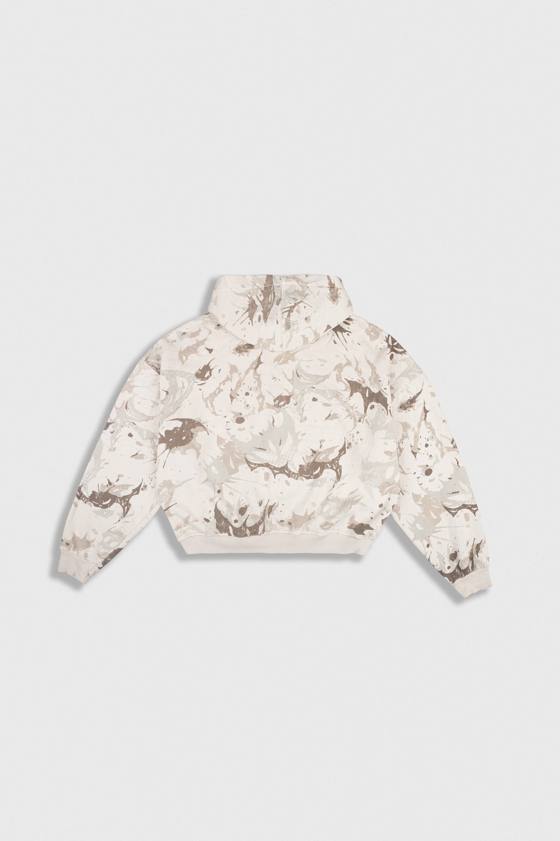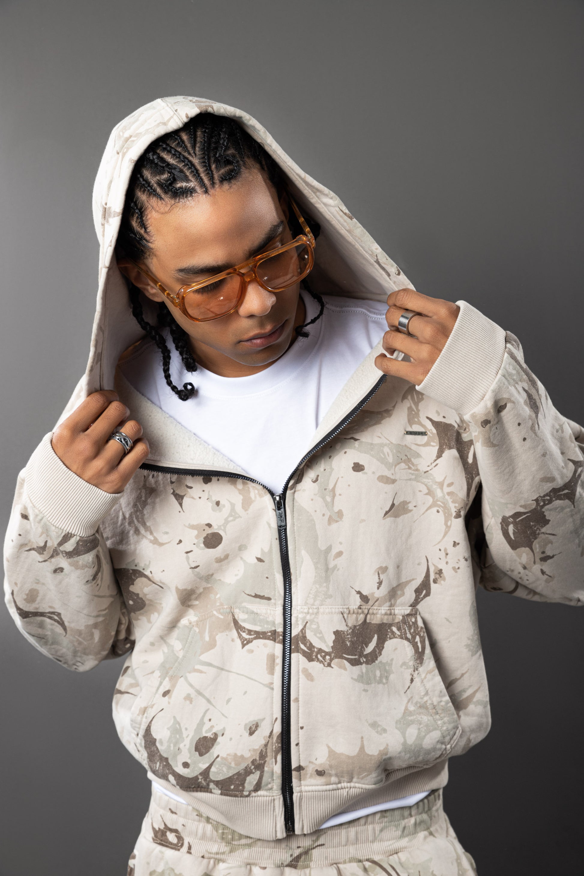 - Estampado cobertura en cuerpo, mangas y capucha.