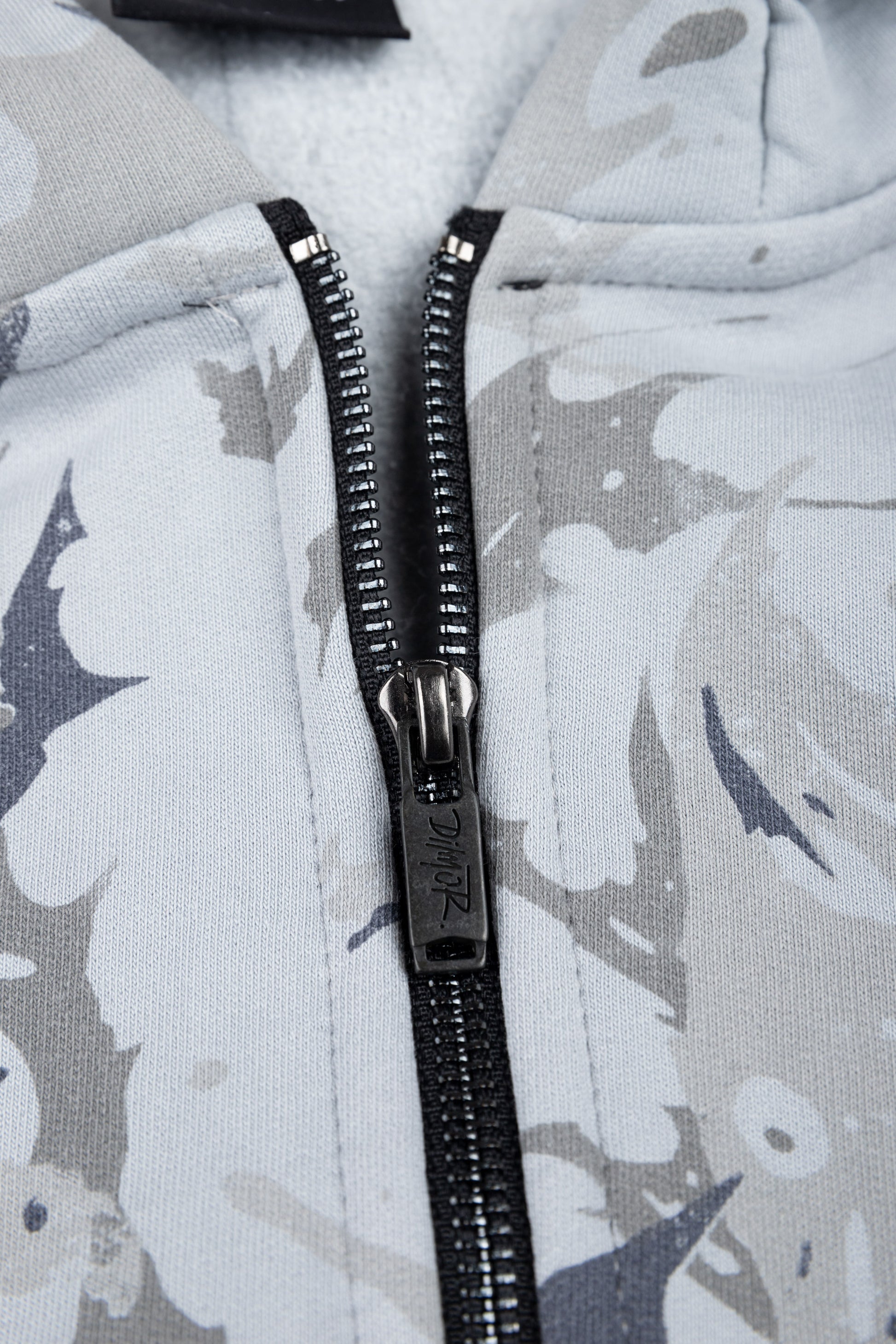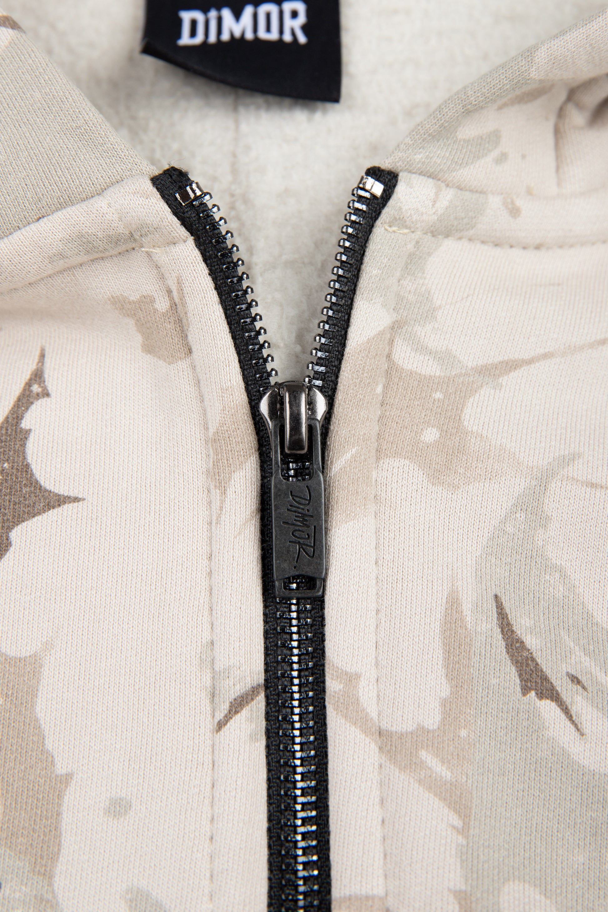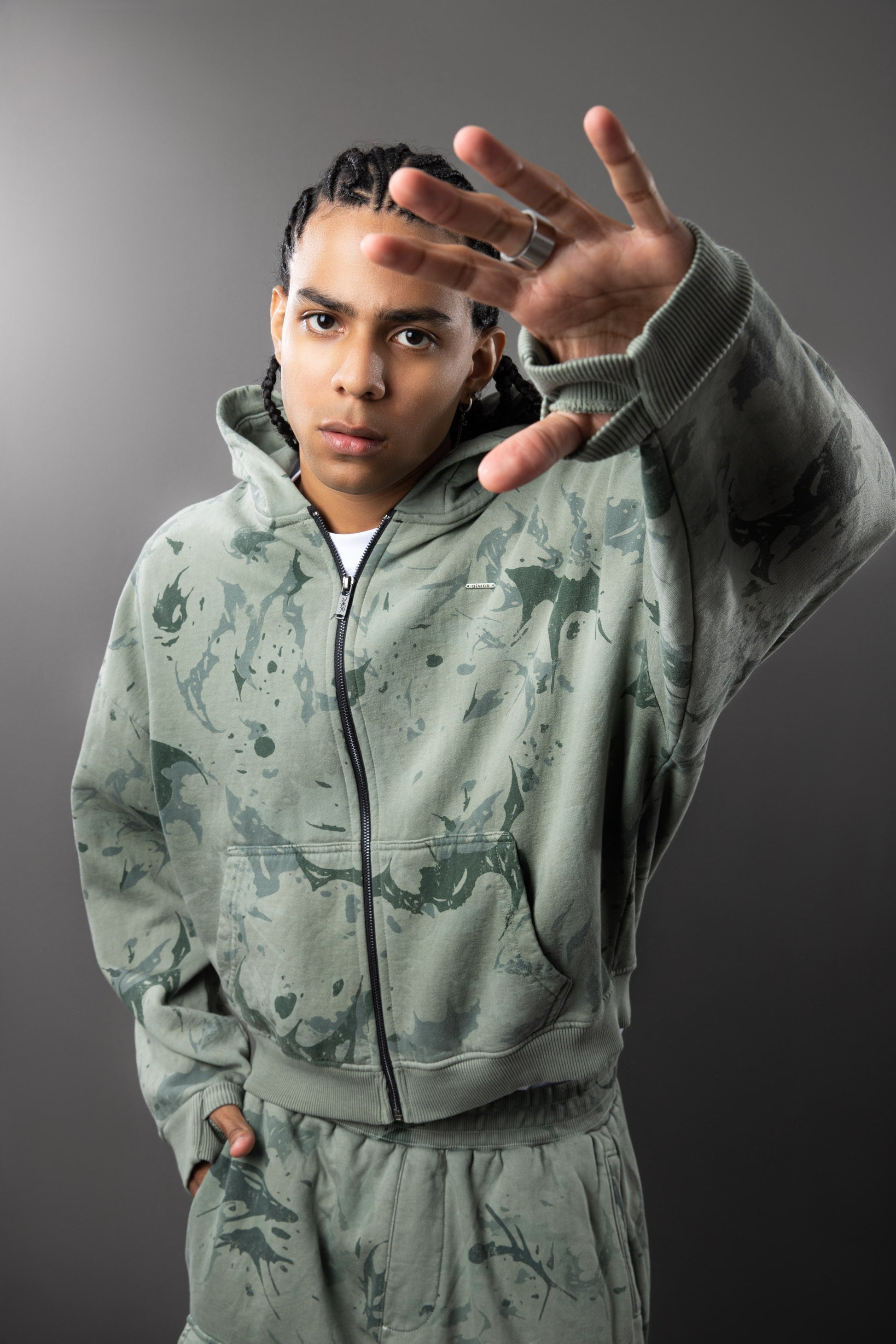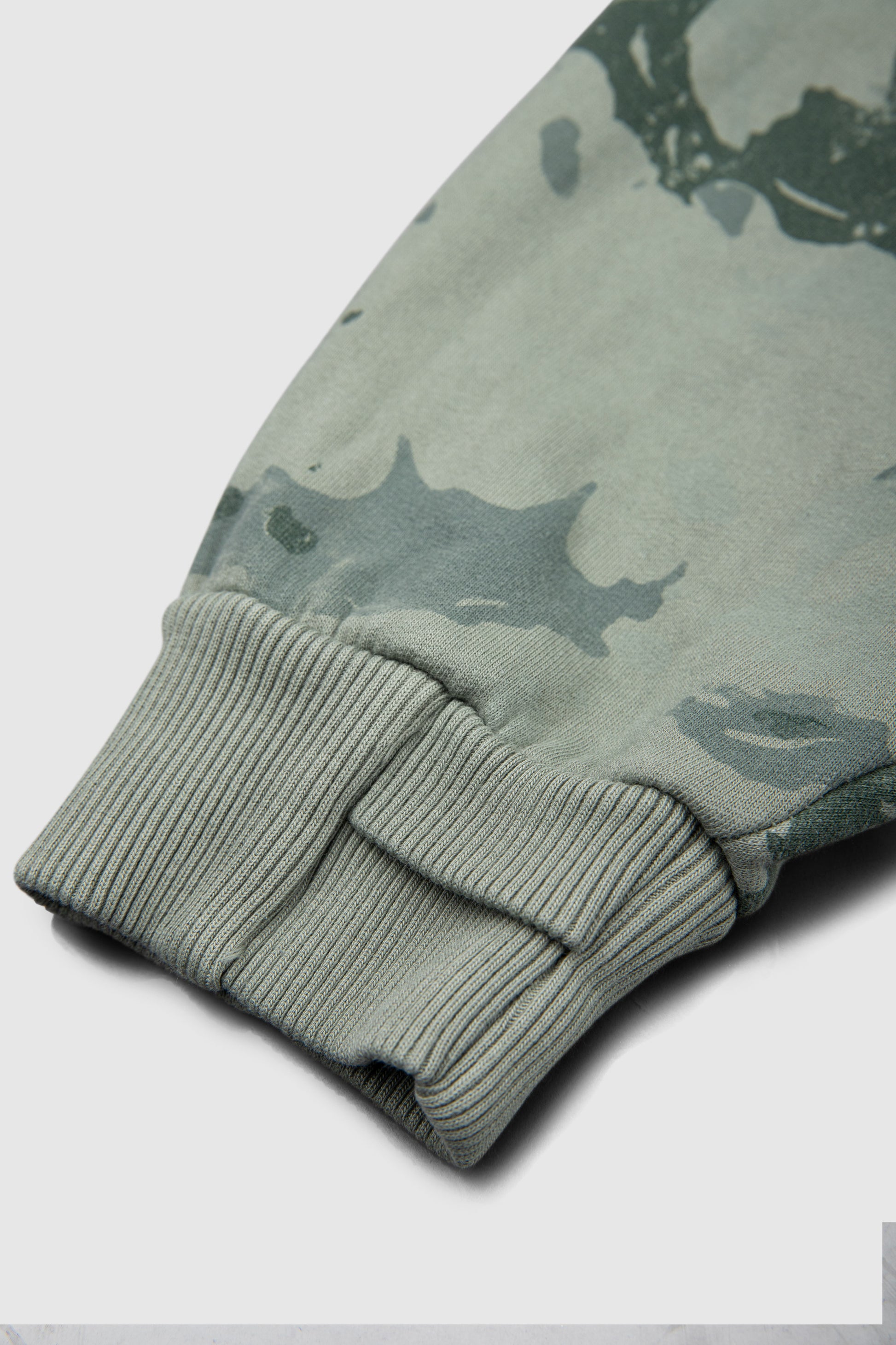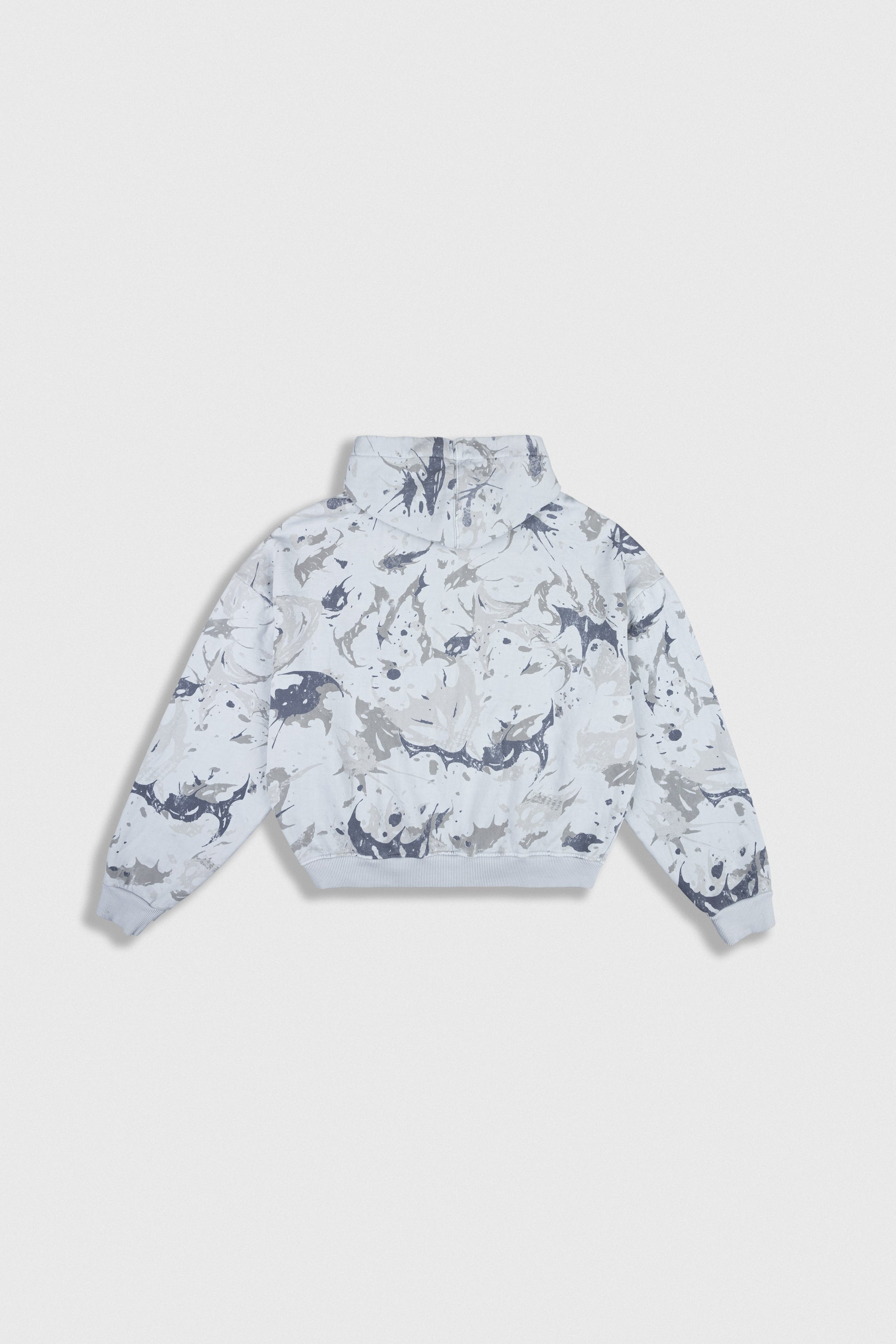 - Estampado cobertura en cuerpo, mangas y capucha.