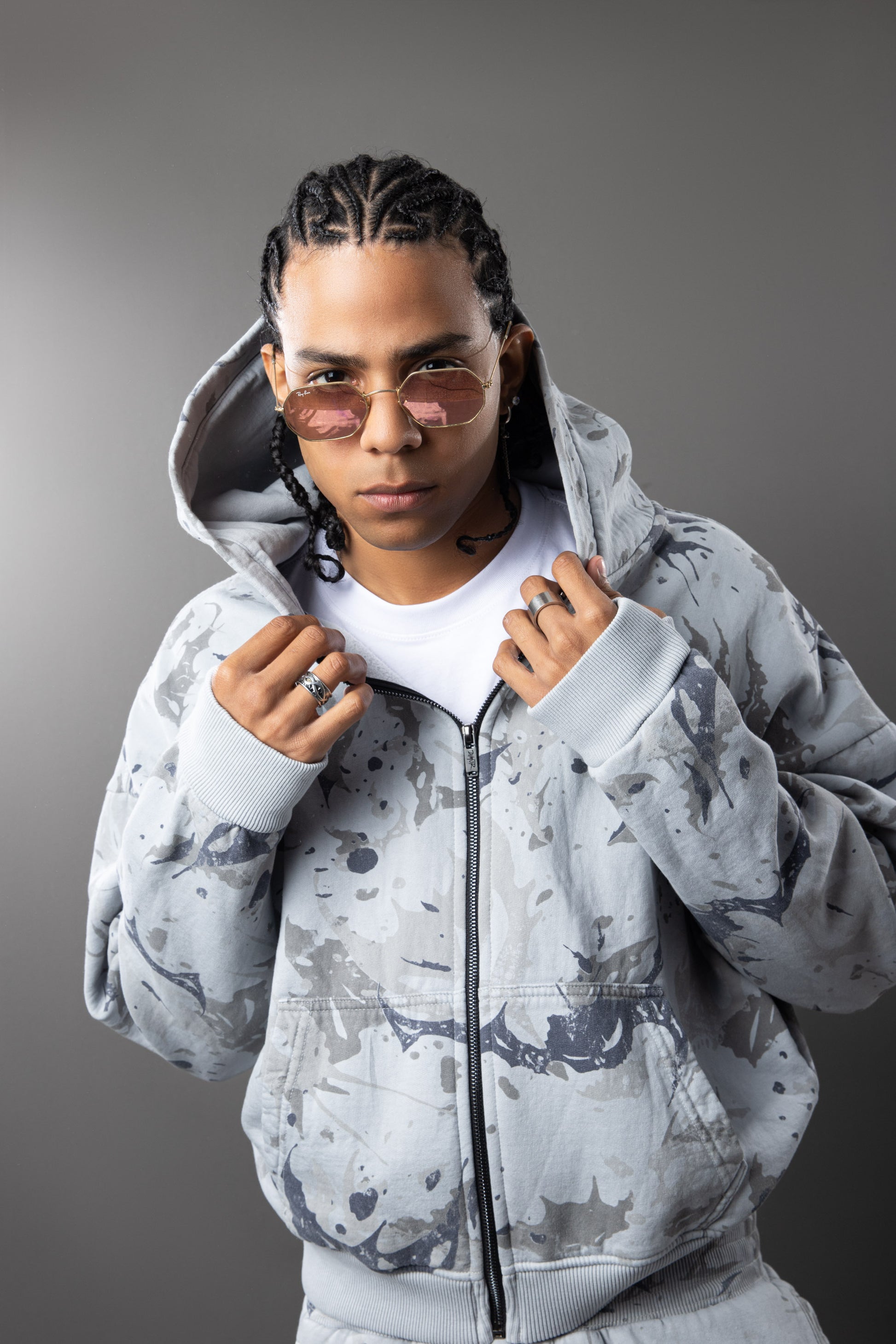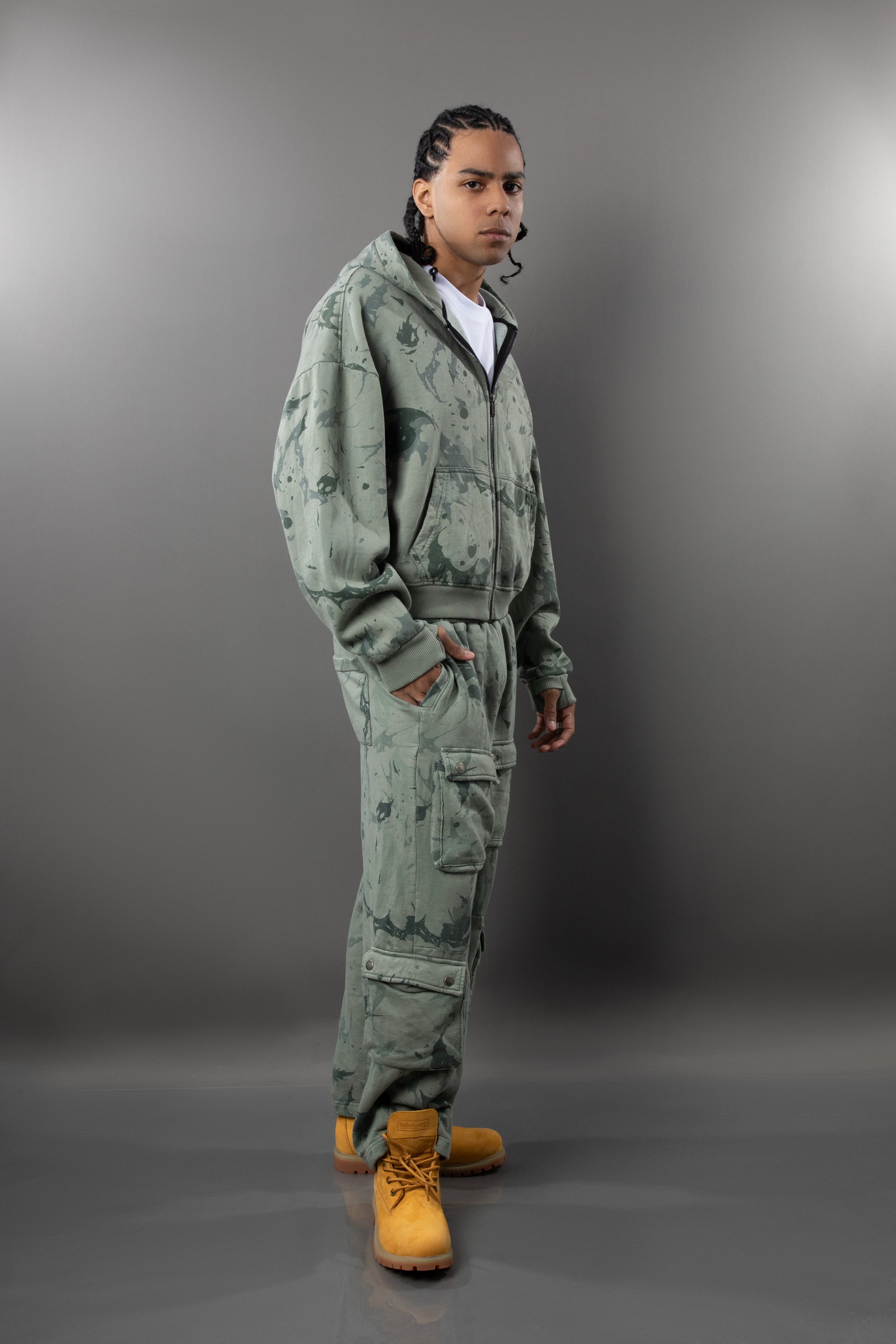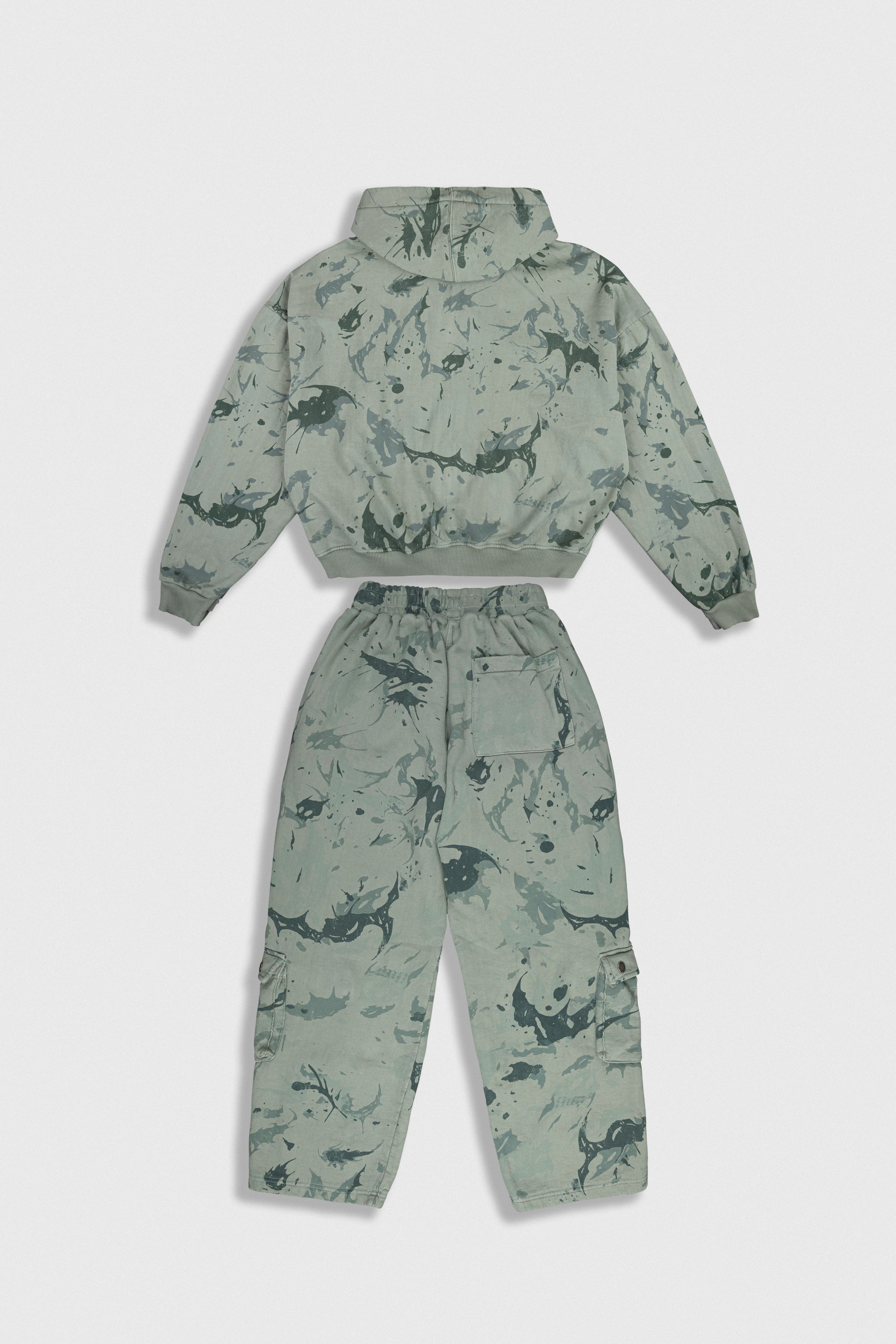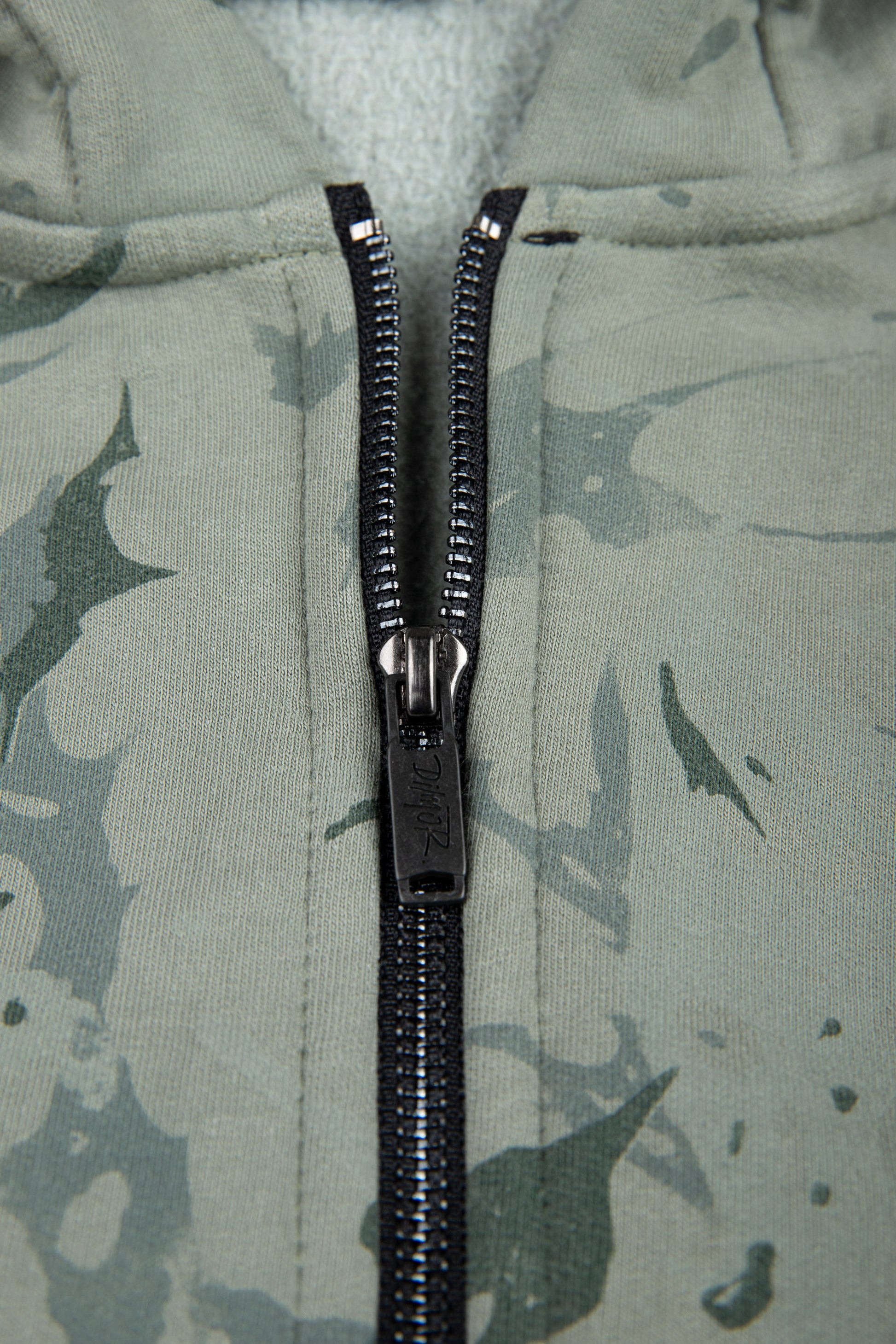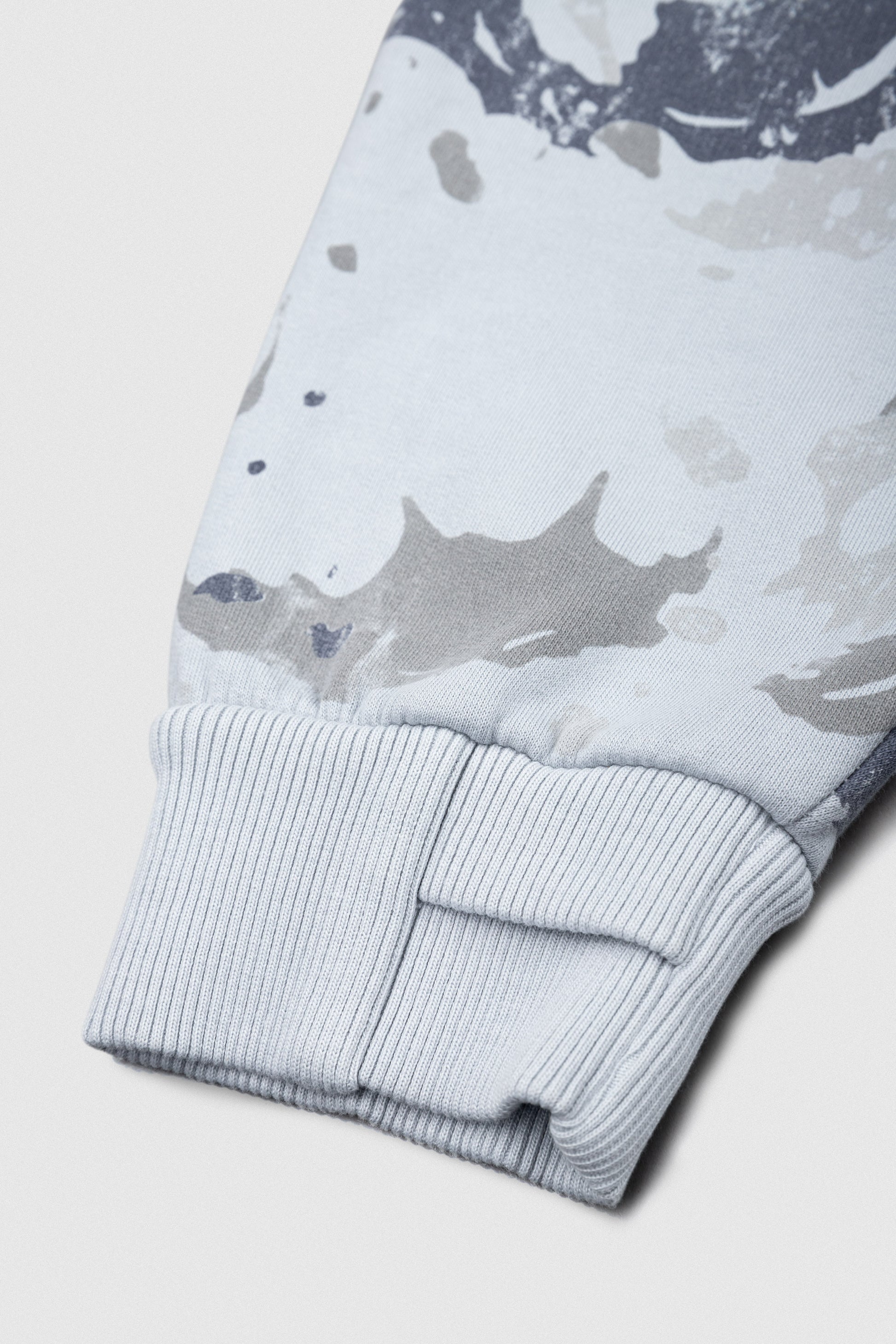 - Estampado cobertura en cuerpo, mangas y capucha.