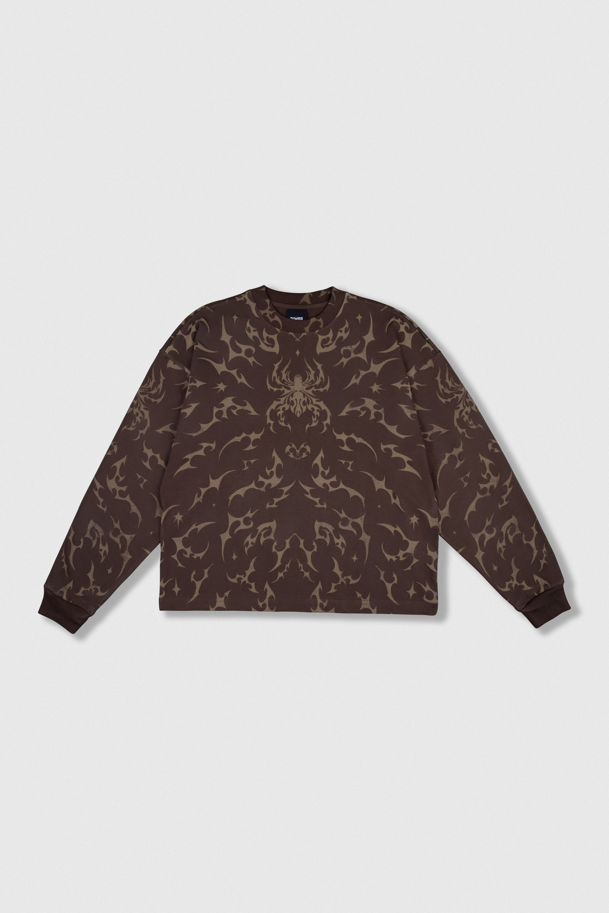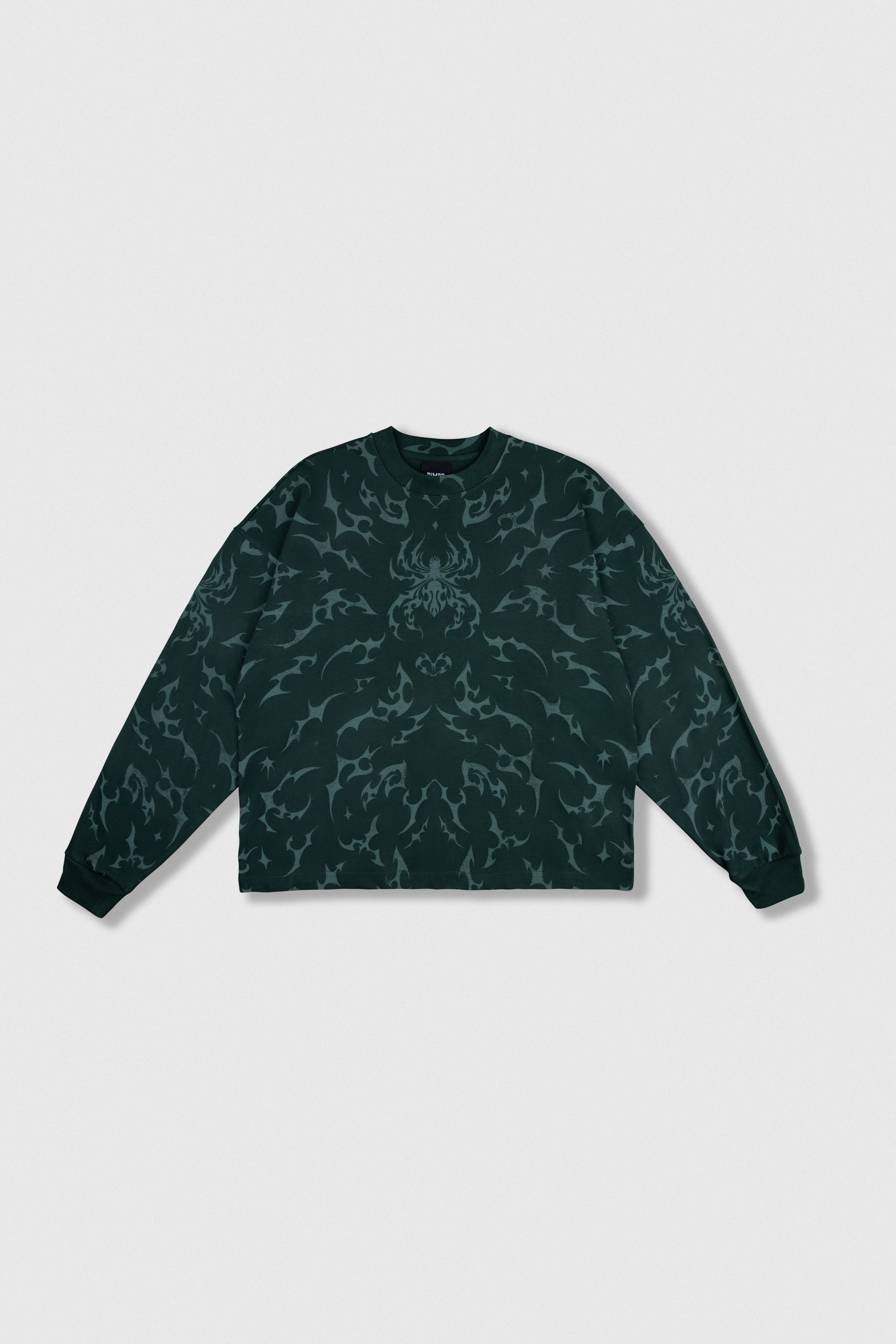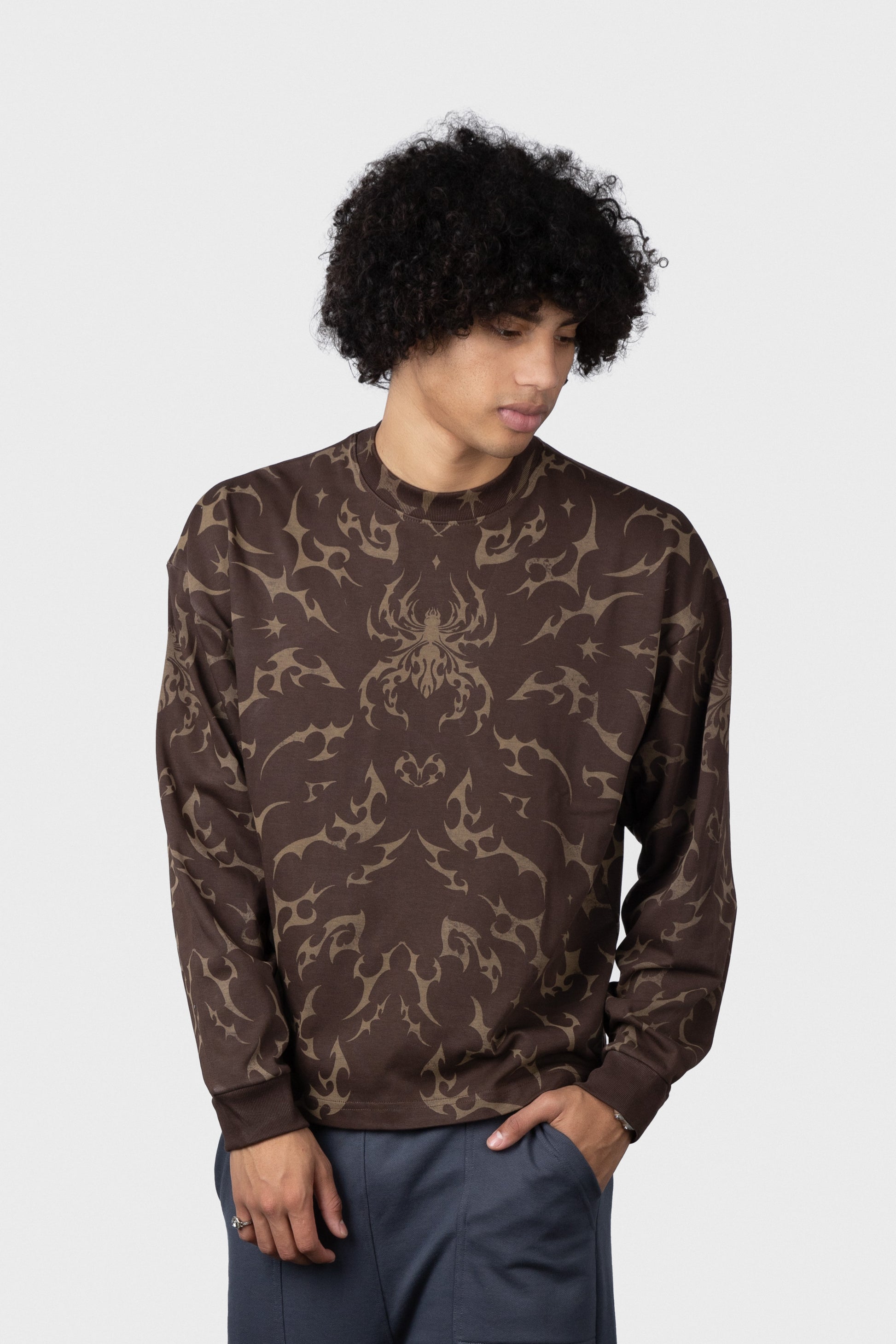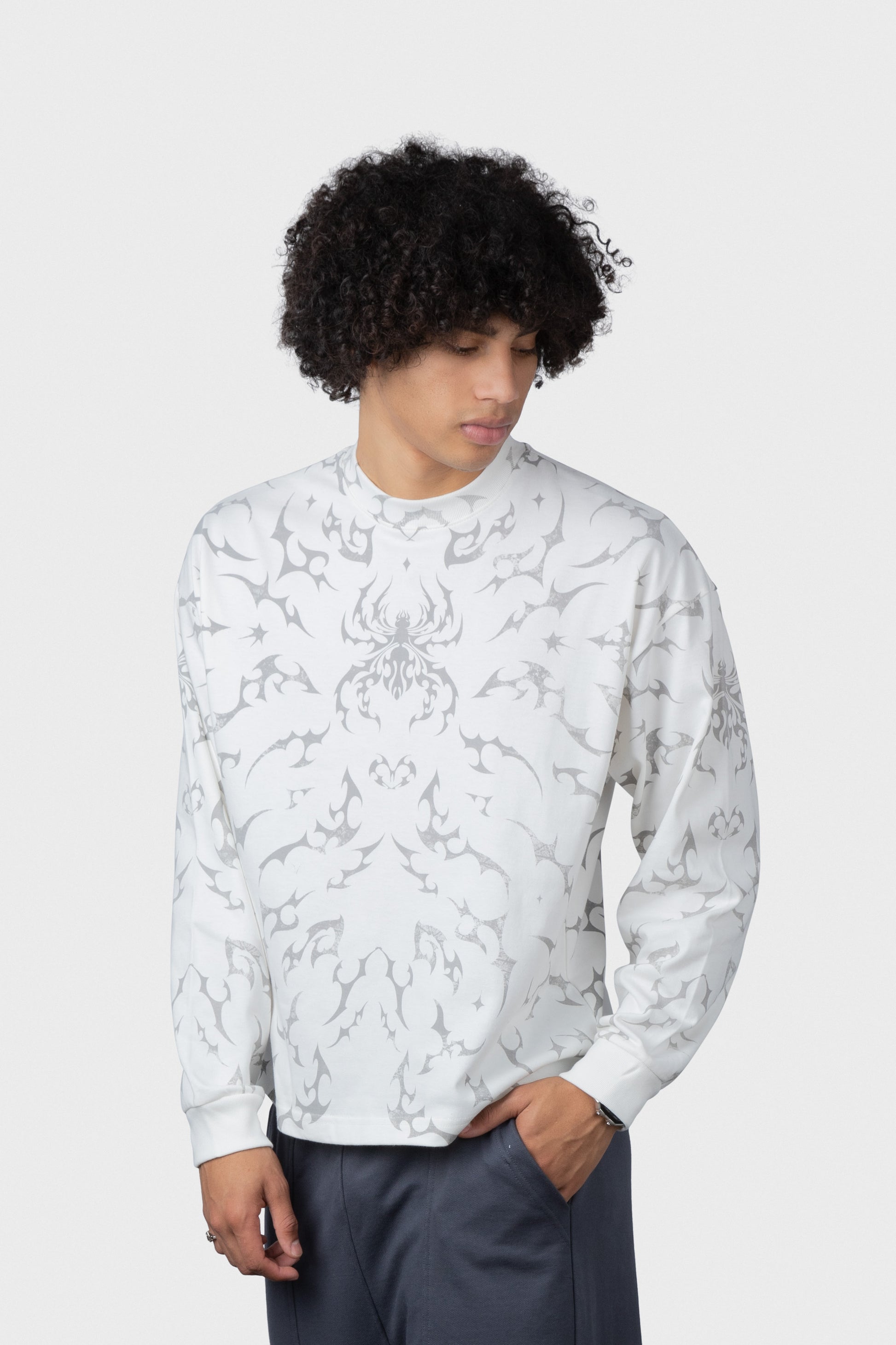 Polo estampado cobertura manga larga cuello redondo y rib en mangas.