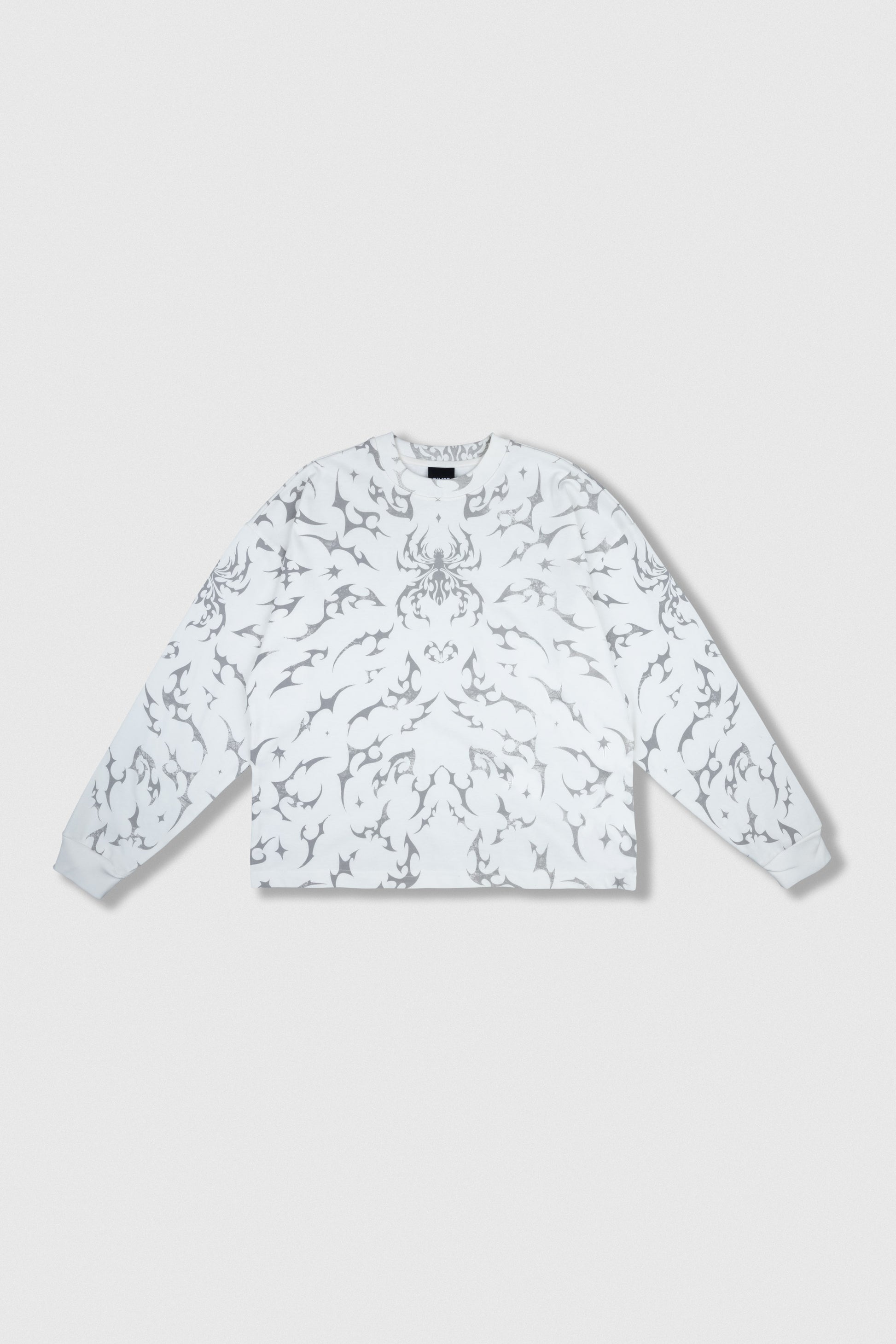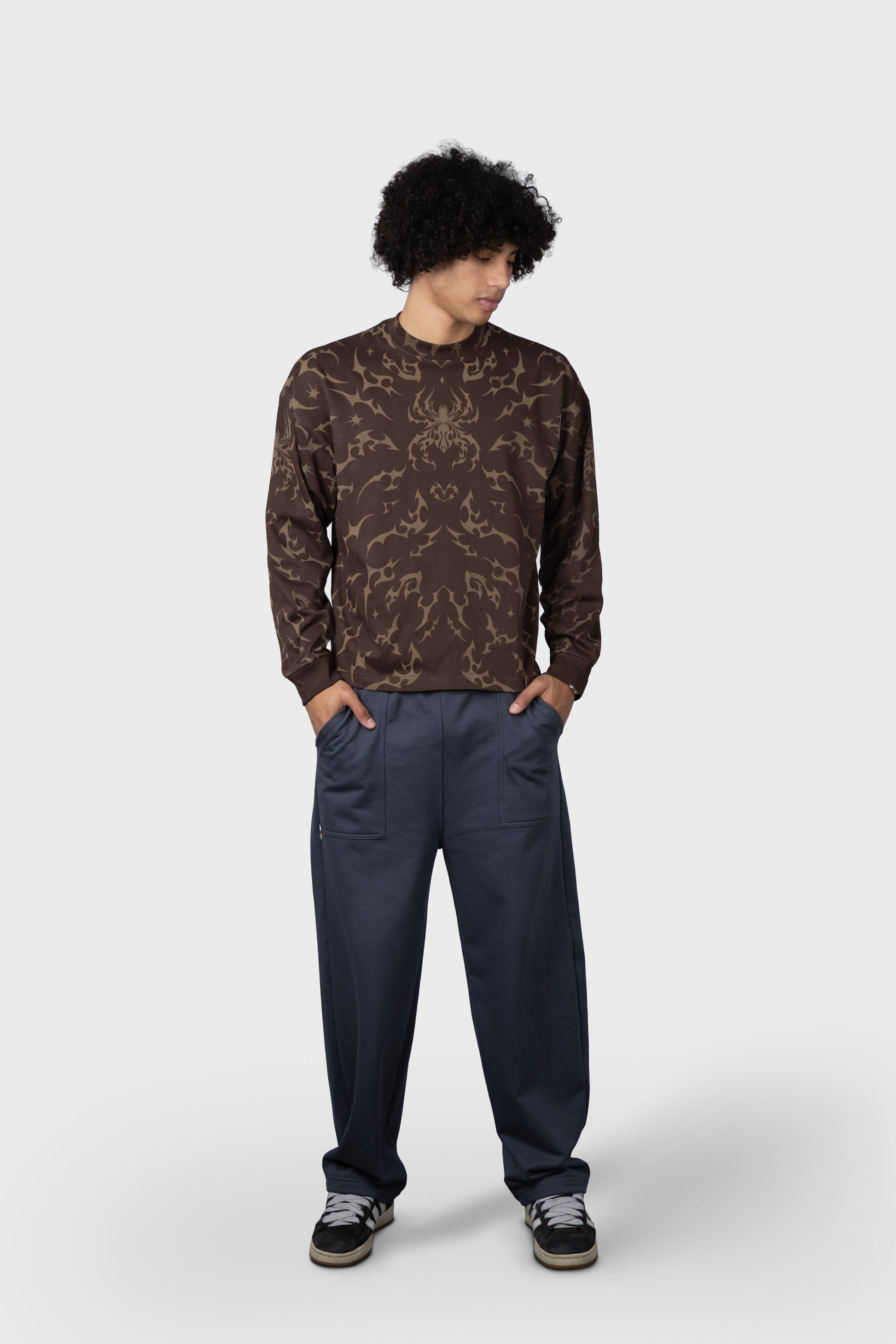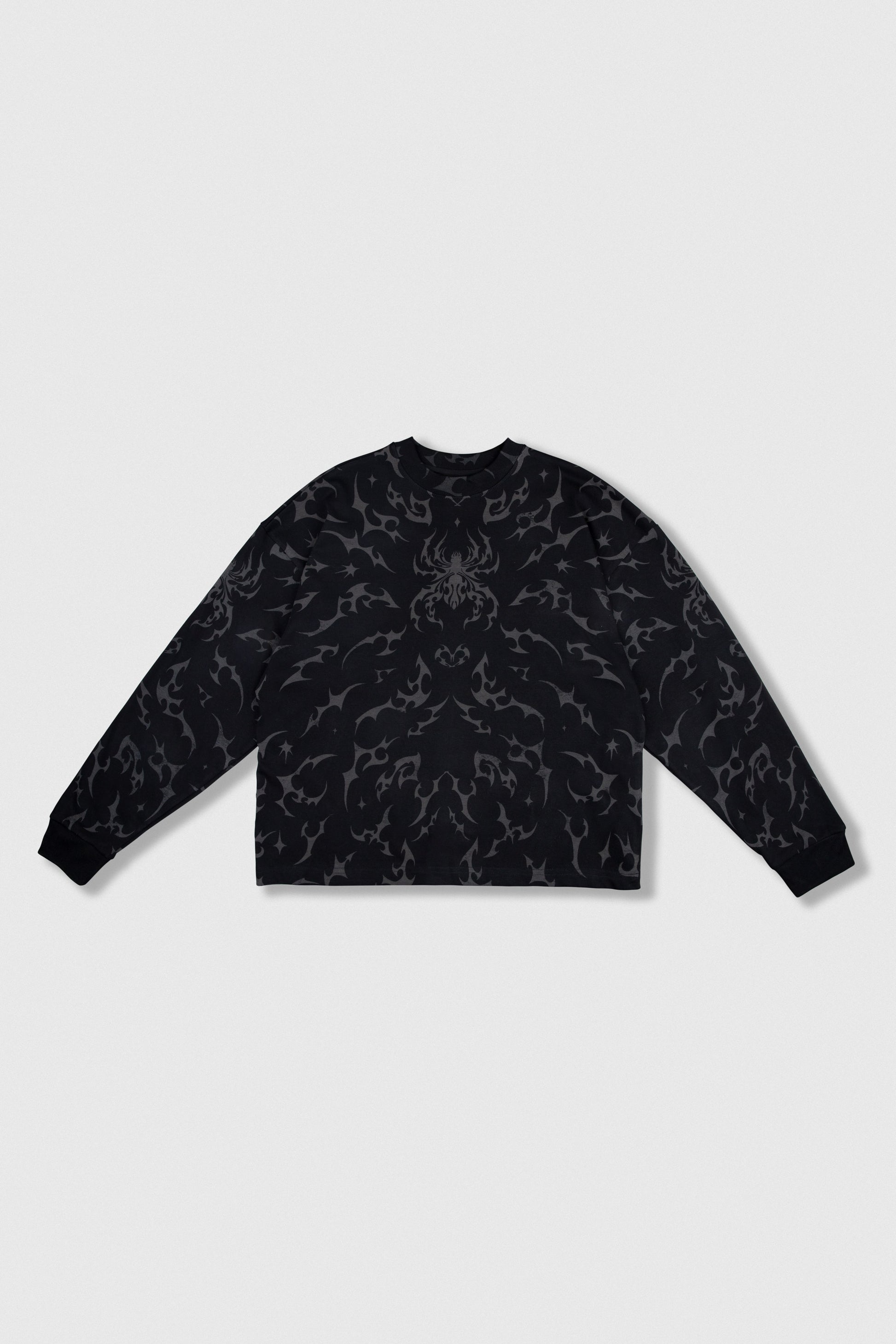 Polo estampado cobertura manga larga cuello redondo y rib en mangas.