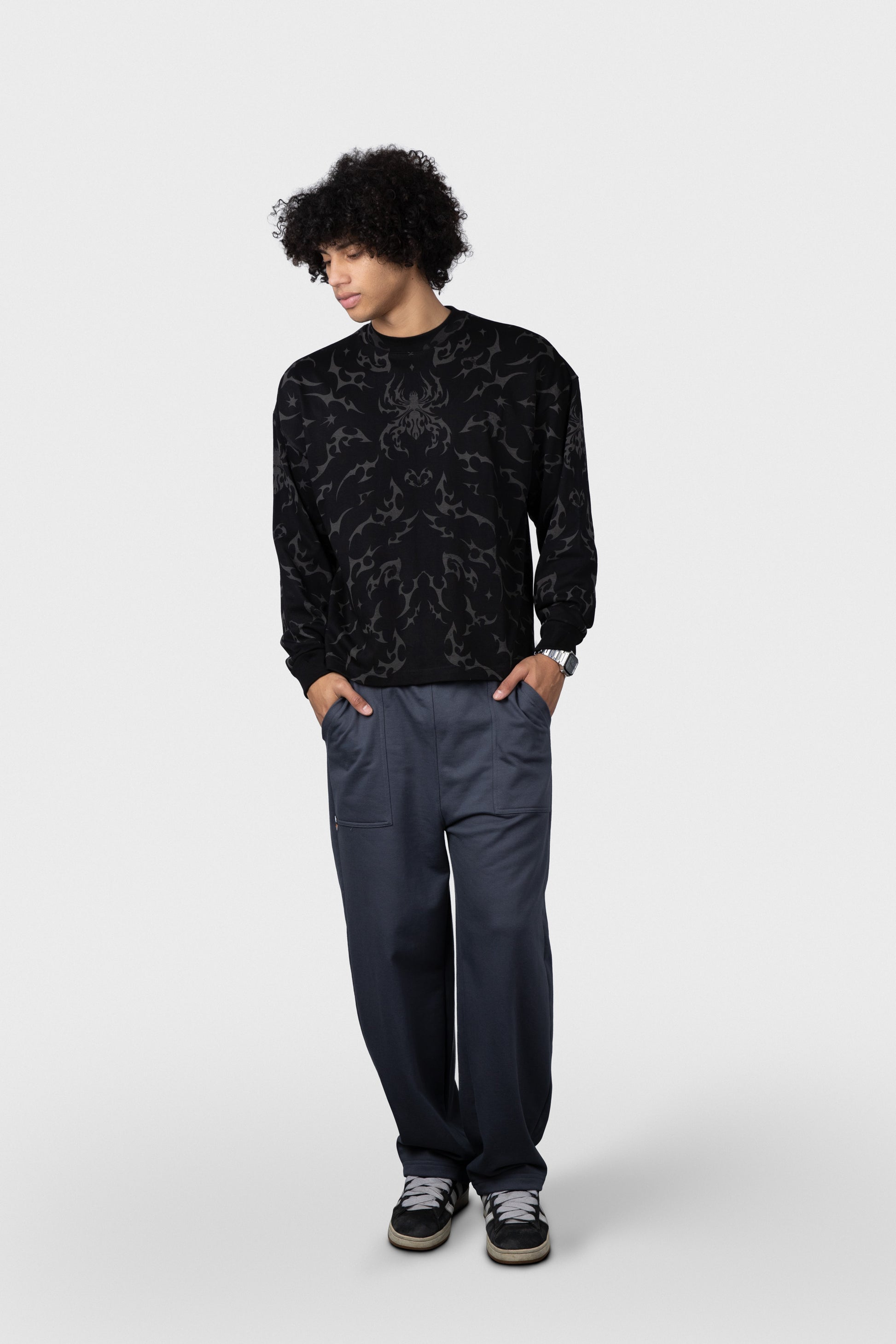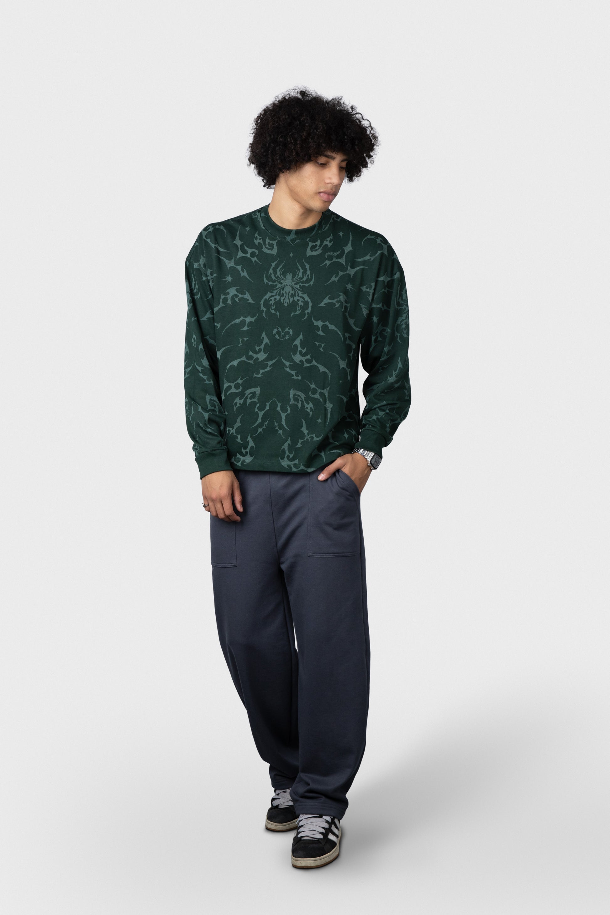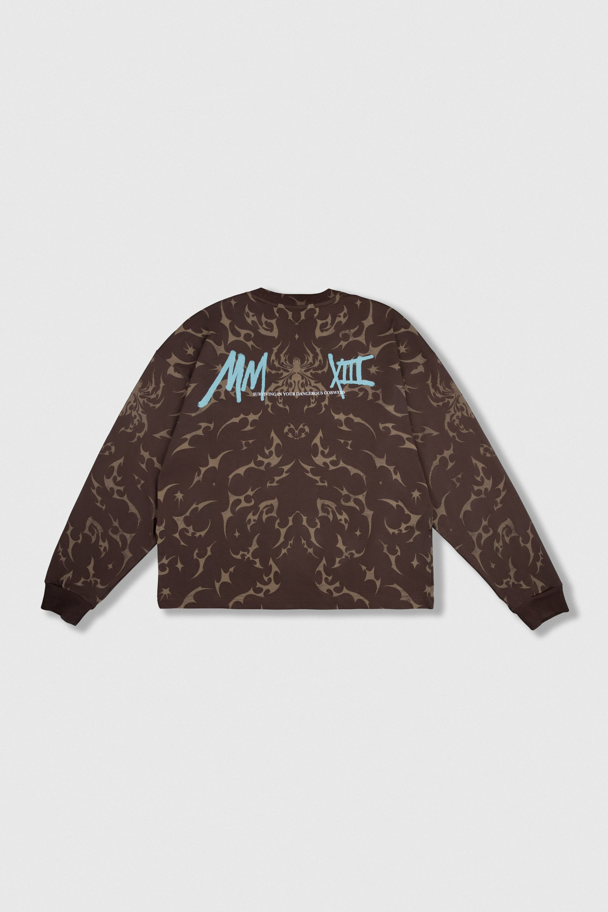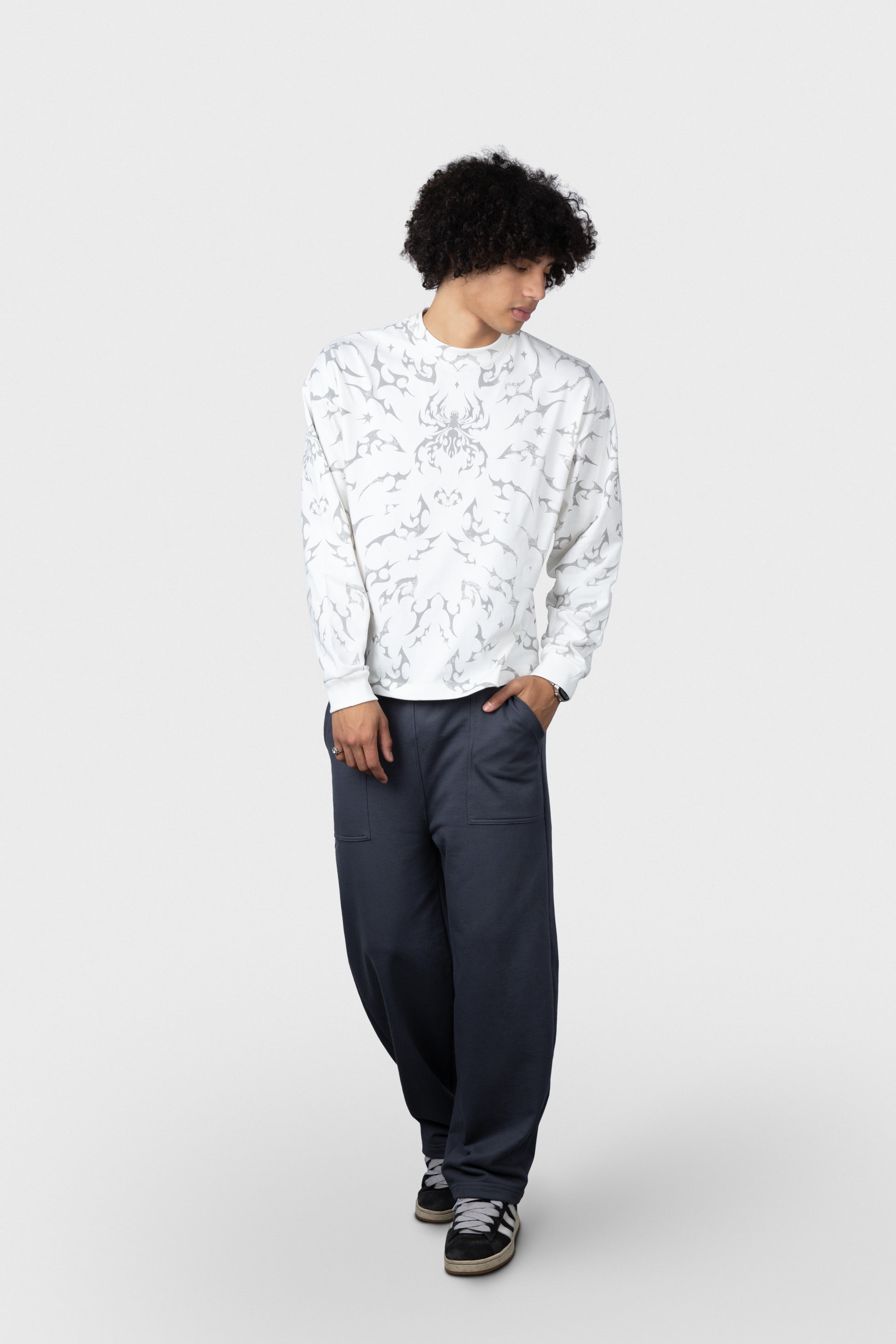 Polo estampado cobertura manga larga cuello redondo y rib en mangas.