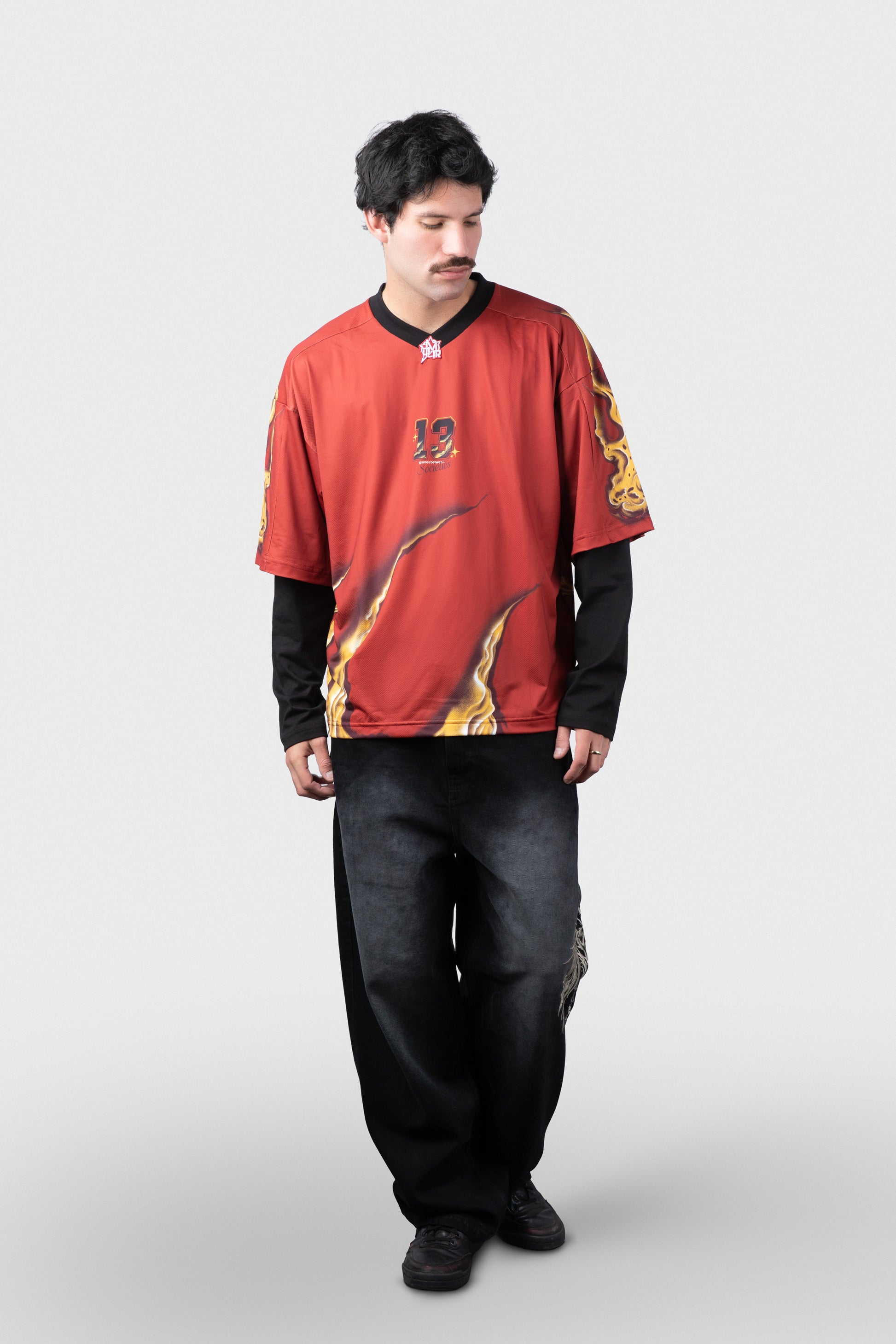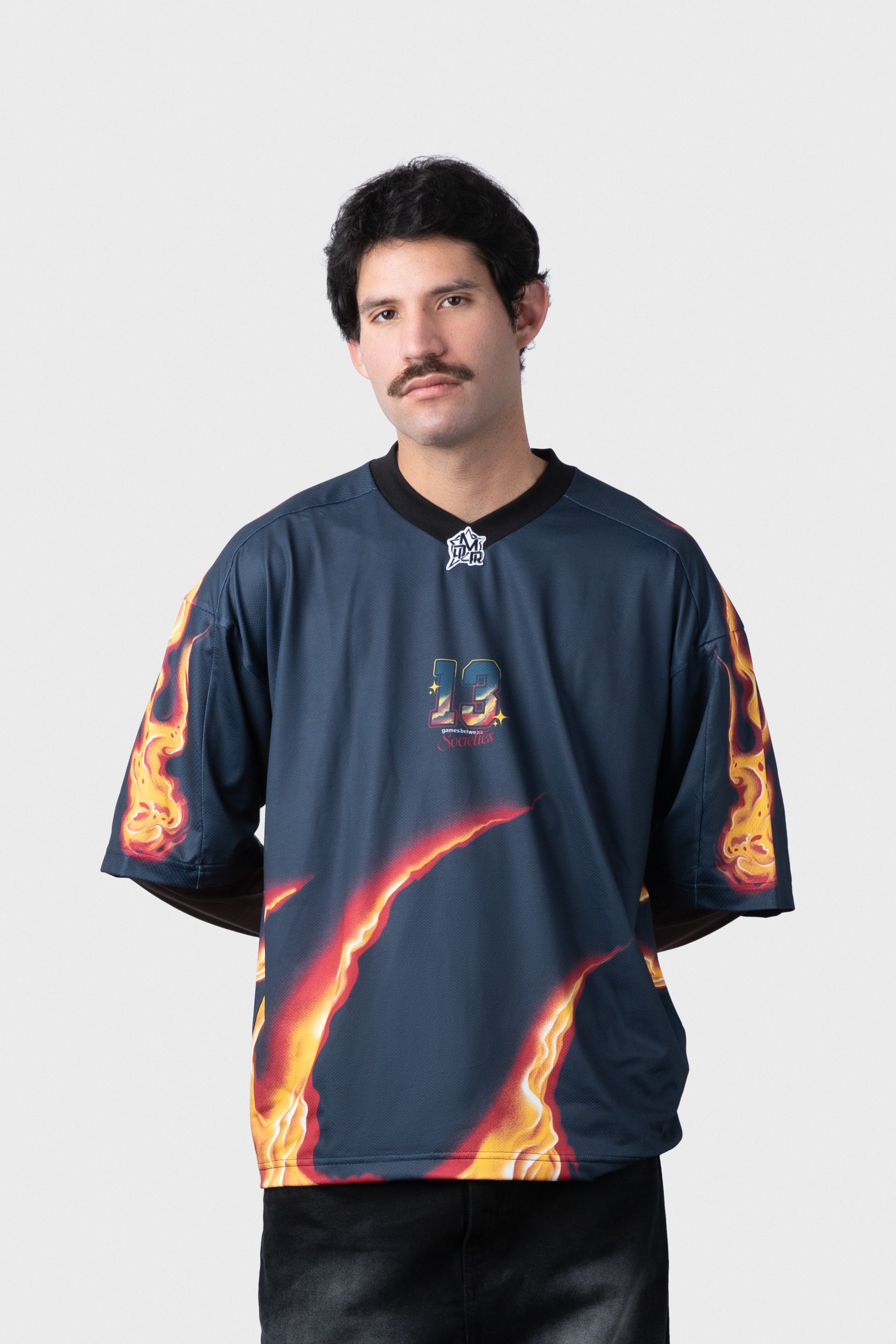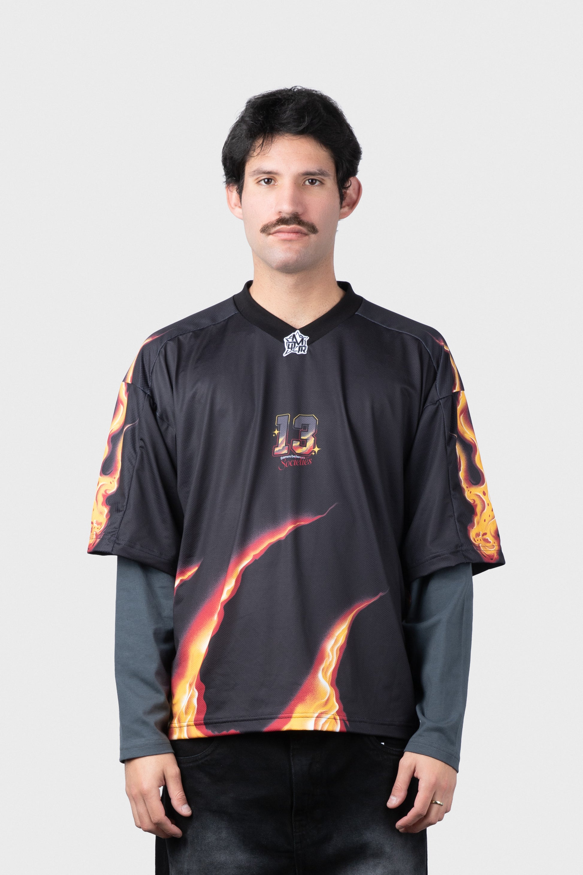 Stefano mide 1.90 cm y usa una talla L (polo manga larga).