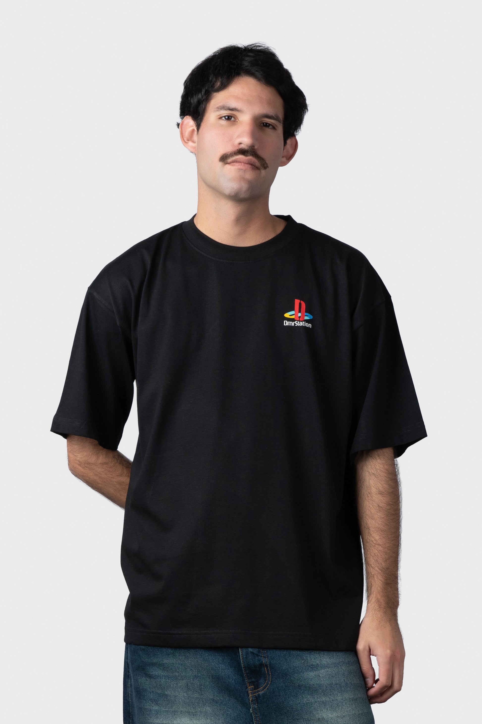 Polo oversize manga corta con cuello redondo.